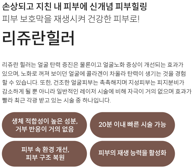 피부의 탄력을 건강한 상태로 돌려주는 신개념 힐러 시술입니다.